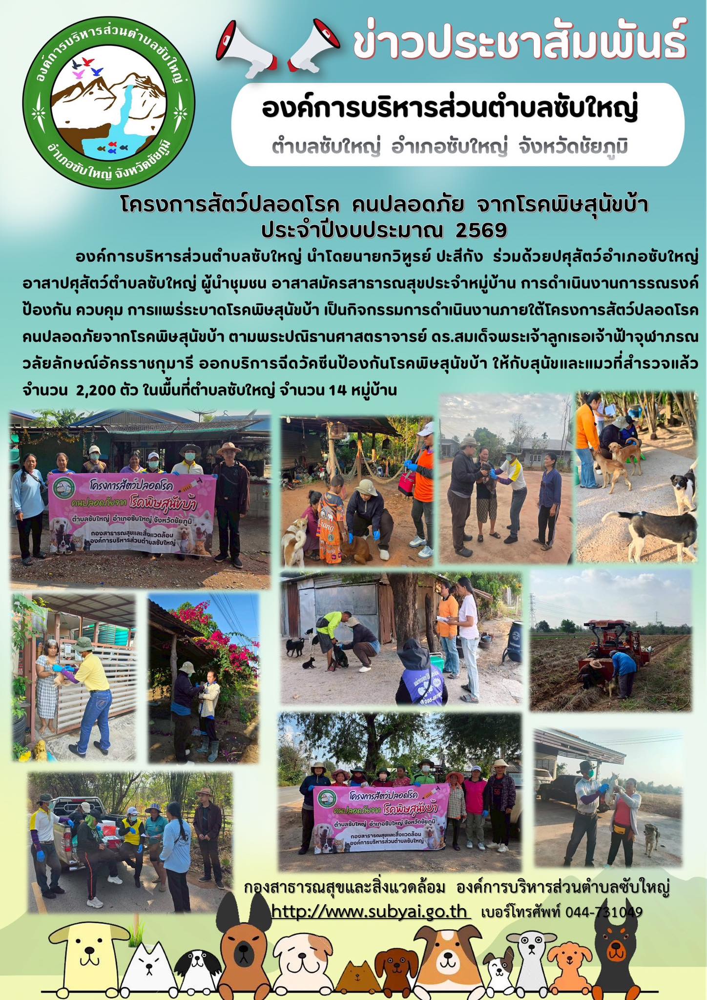 รายงานข้อมูลผลการดำเนินงานการฉีดวัคซีนป้องกันโรคพิษสุนัขบ้า ในสุนัขและแมว ตำบลซับใหญ่