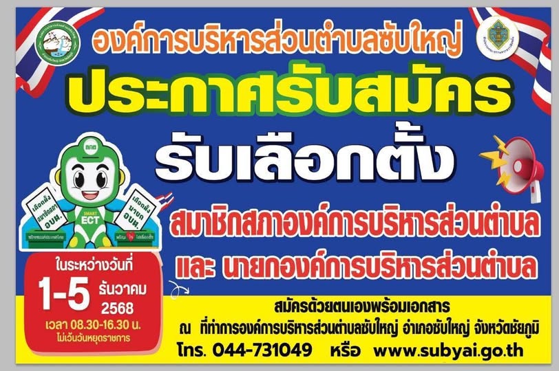 ประกาศคุณสมบัติและลักษณะต้องห้าม ของผู้สมัครรับเลือกตั้งสมาชิกสภาองค์การบริหารส่วนตำบลซับใหญ่และนายกองค์การบริหารส่วนตำบลซับใหญ่ |