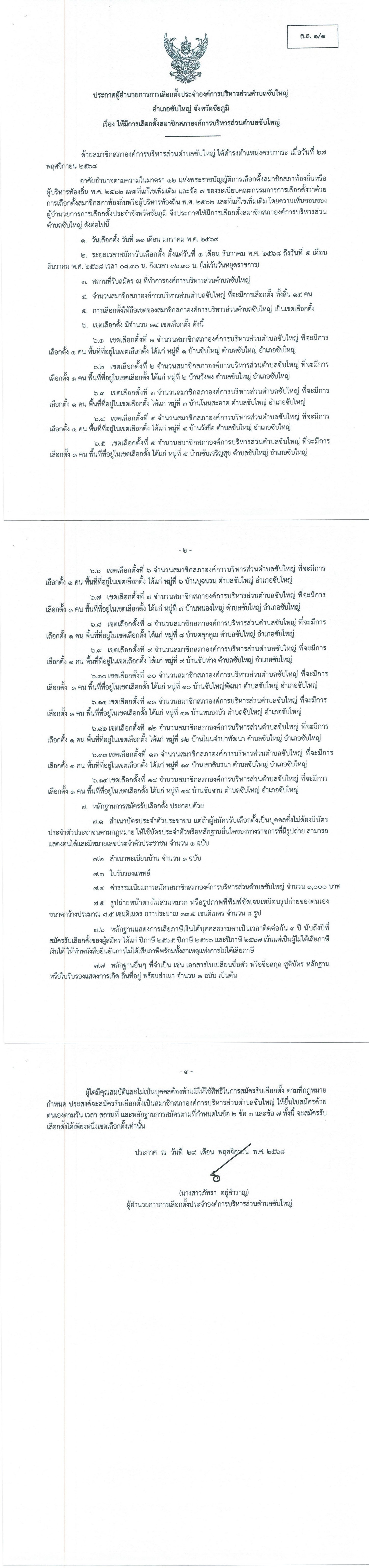 ประกาศให้มีการเลือกตั้งนายกองค์การบริหารส่วนตำบลซับใหญ่ |